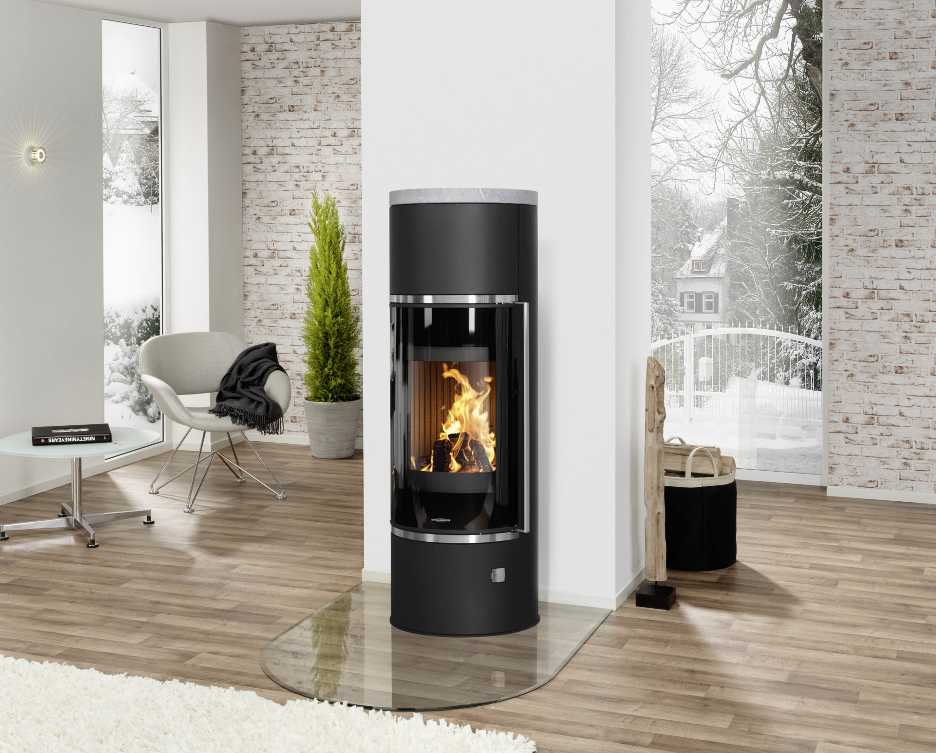 Θέρμανση-αποθήκευση “Heating Plus”: Το ενσωματωμένο ειδικό μείγμα μπορεί να εξοικονομήσει θερμότητα και να την εκπέμψει στο δωμάτιο έως και 13 ώρες μετά την κατάσβεση της φωτιάς.